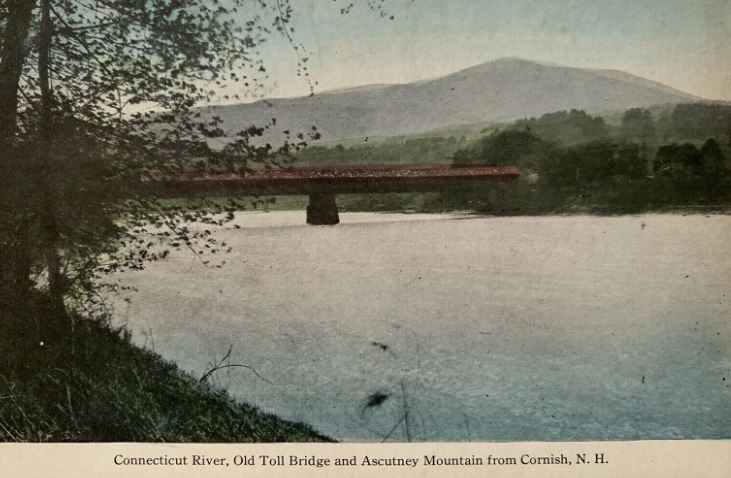 Connecticut River, Old Toll Bridge and Ascutney Mountain from Cornish, N.H.